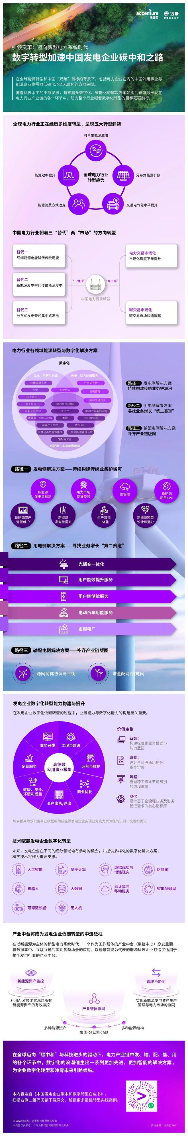 為了應對未來更加“碎片化”的能源系統(tǒng),滿足消費者日益迭代的需求,埃森哲攜手遠景發(fā)布的《中國發(fā)電企業(yè)碳中和數(shù)字轉型白皮書》勾勒了發(fā)電企業(yè)圍繞發(fā)電、輸配電和用電全產業(yè)鏈構建轉型路徑,并探討各類數(shù)智化解決方案的應用場景。