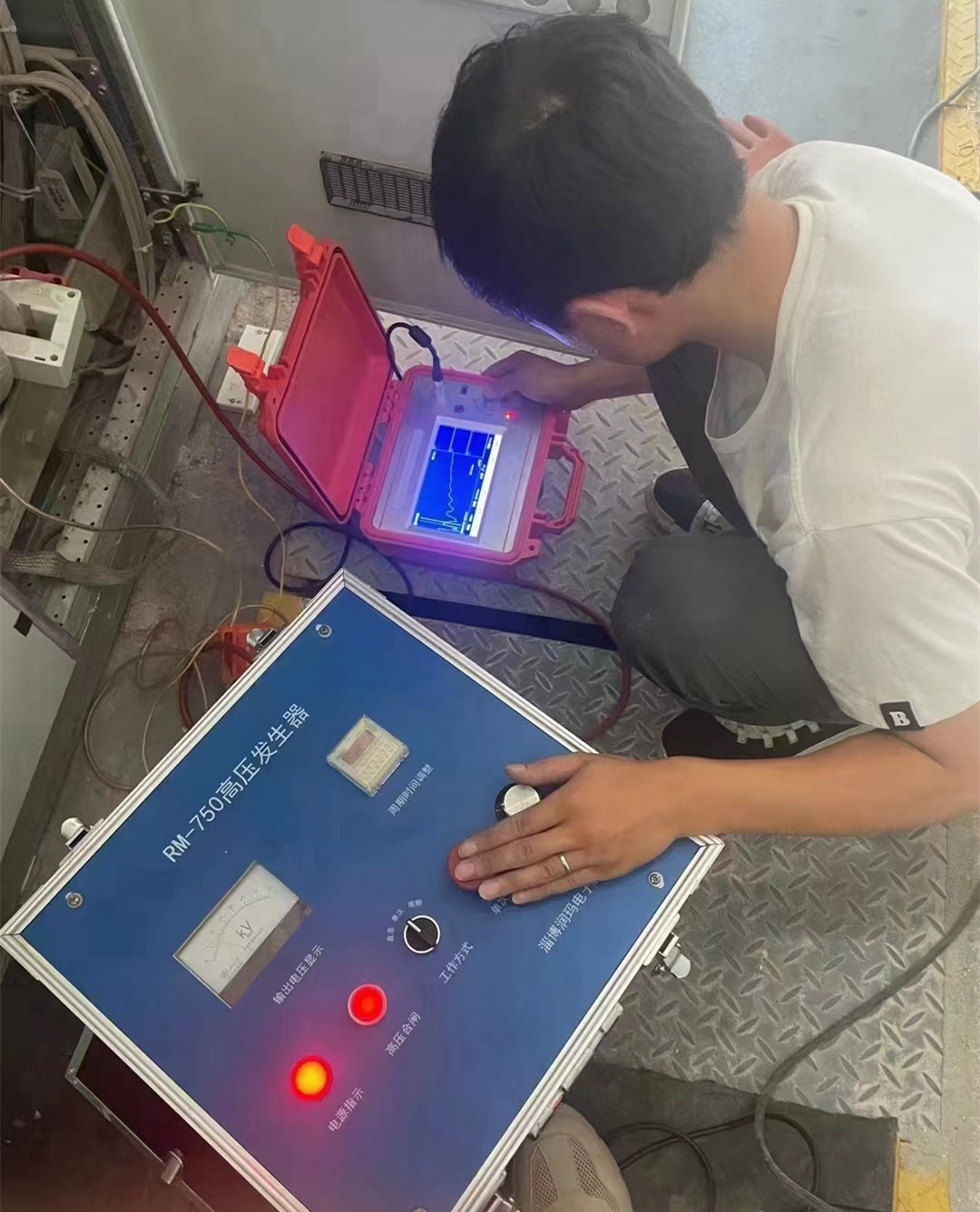 確定電纜全?后,??壓發(fā)?器多次打壓后查找近端有故障波形顯示的情況。?定點儀在故障端進?定位。